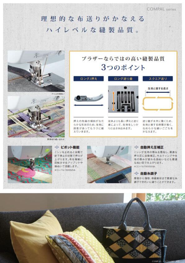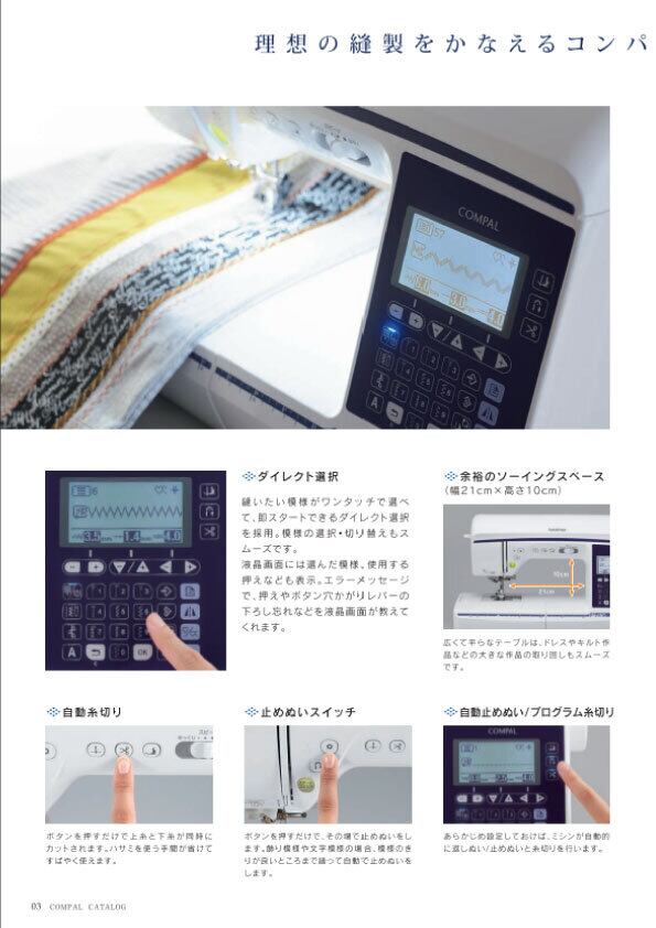 ハイレベルなソーイングに対応する先進技術と優しい使い心地の両方を追求したミシンです。これまでにない満足感を届けます。