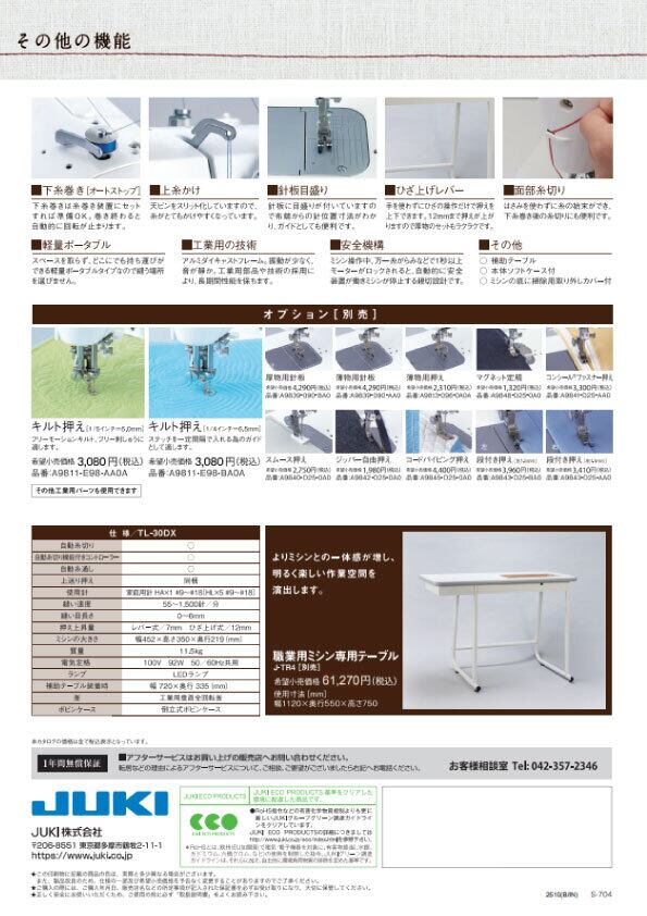 押え圧が調整できるので、厚物から薄物まで生地に合わせて美しく仕上げます。