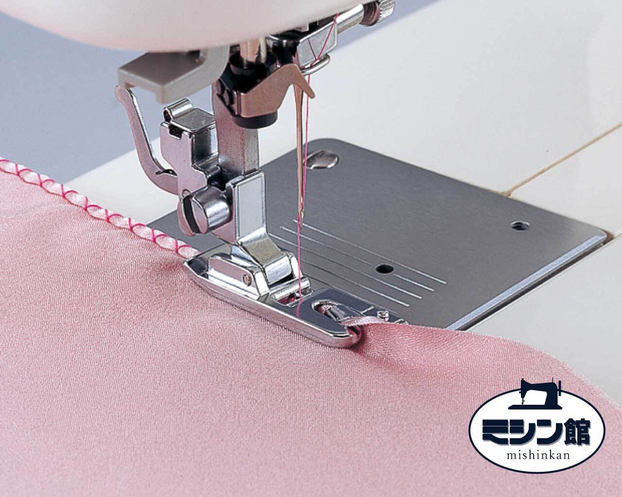 ジグザグの縫い模様を使って布端をジェル風に三巻をします。